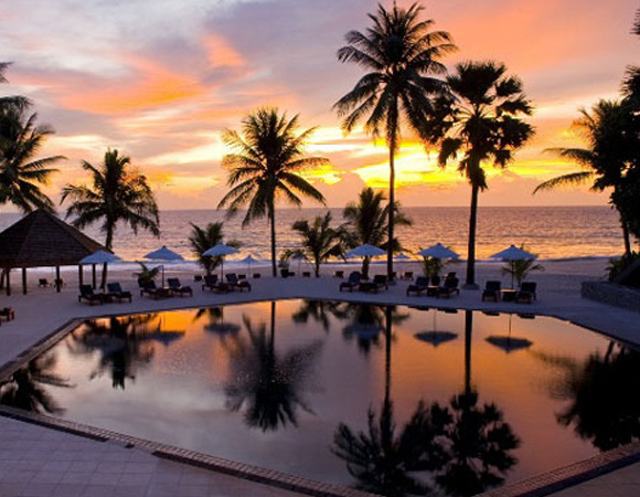 The owners of The Surin have somehow managed to keep Pansea Beach off the tourist maps, so despite it being a public beach, it is blissfully empty, with the only non-hotel access possible via boat! This blissful location makes The Surin perfect for those seeking rest and relaxation. With 105 cottages hidden within a steep coconut plantation, the pristine resort offers undisturbed views of the Andaman Sea. The perfectly located hotel has even had a chic redesign, courtesy of acclaimed architect Ed Tuttle. The main focus point is the chic black-tiled swimming pool, which springs to life at sunset, reflecting the night sky. My beachfront cottage was one of those flooded in the devastating tsunami. During my stay the immaculate property was light and modern and its generous outdoor lounge area was idea for a sundowner.