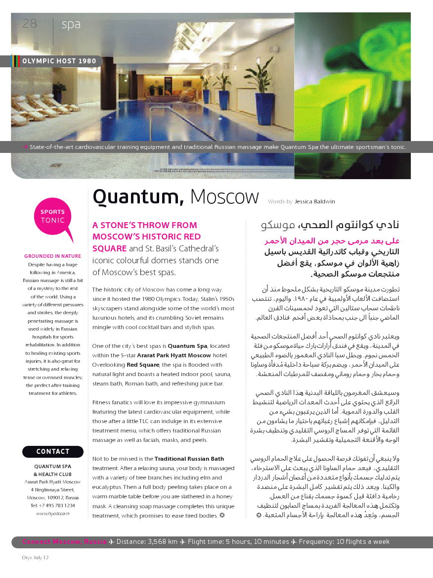 Moscow Spa Review (Oryx In-Flight Magazine) Share this: Click to share on X (Opens in new window) X Click to share on Facebook (Opens in new window) Facebook Like Loading...